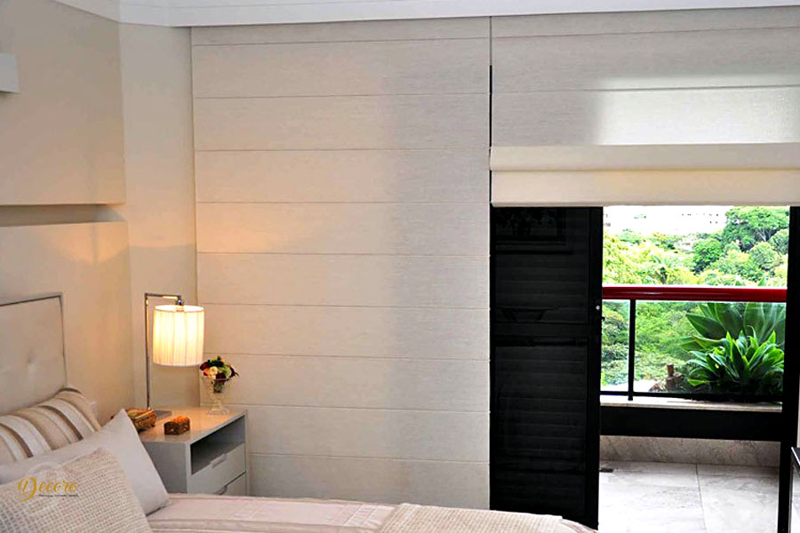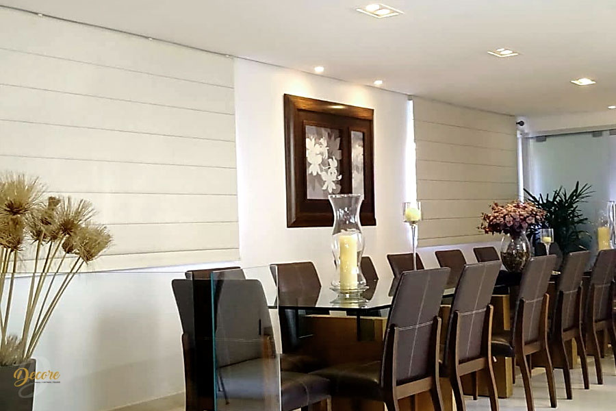 Uma característica distintiva das cortinas romanas é a capacidade de controlar a quantidade de luz que entra no ambiente de maneira precisa. Ao serem elevadas, as dobras se formam de maneira organizada, proporcionando uma estética limpa e sofisticada. Quando abaixadas, oferecem privacidade e filtram a luz de forma suave.